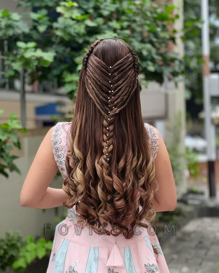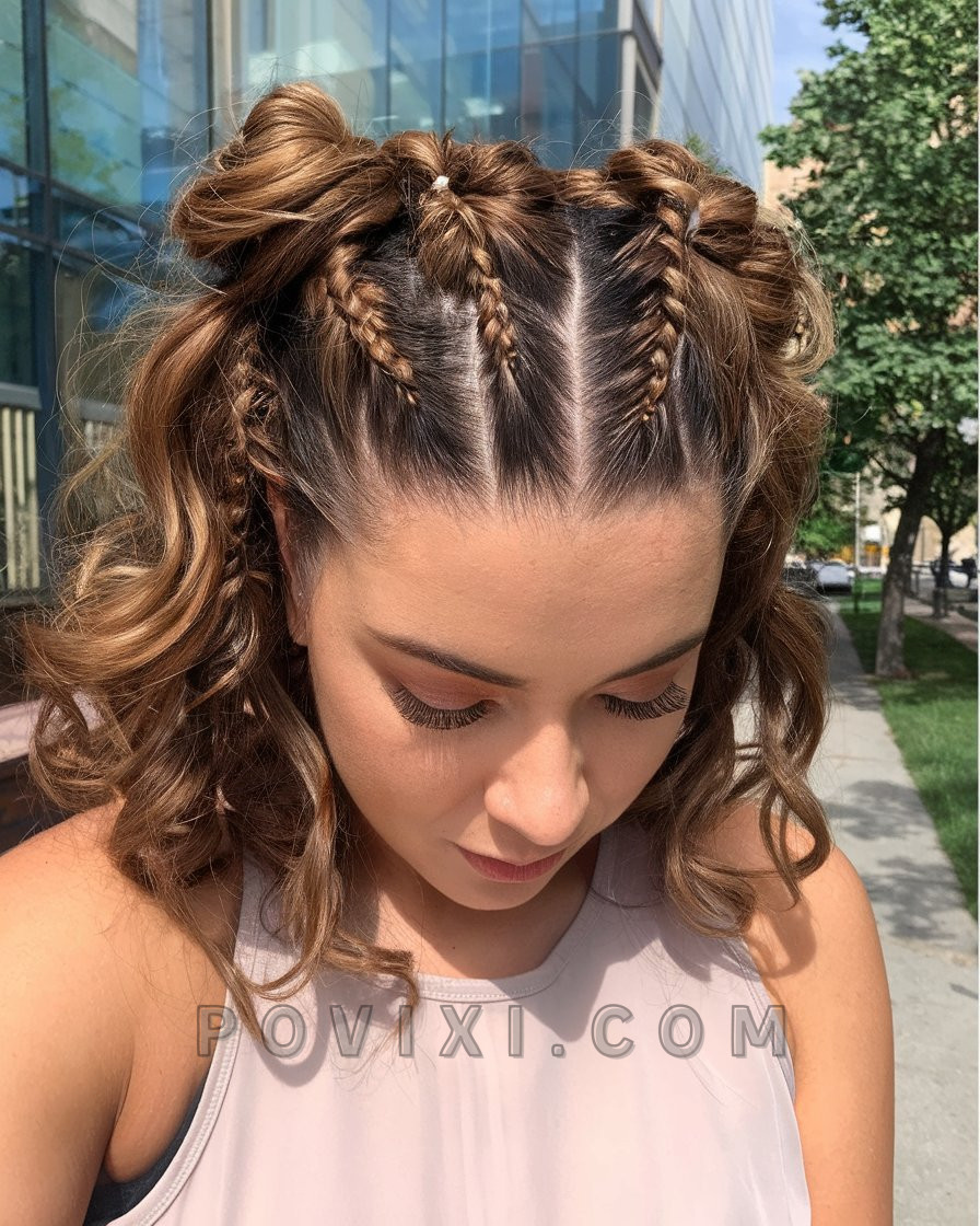 This playful style reimagines classic braids into puffed, structured segments running down the back. The curly fringe left at the front adds softness and balances out the symmetry. It’s creative, cute, and doesn’t take itself too seriously—perfect for women who want to show off their individuality. Great for showcasing color-treated or balayage hair.