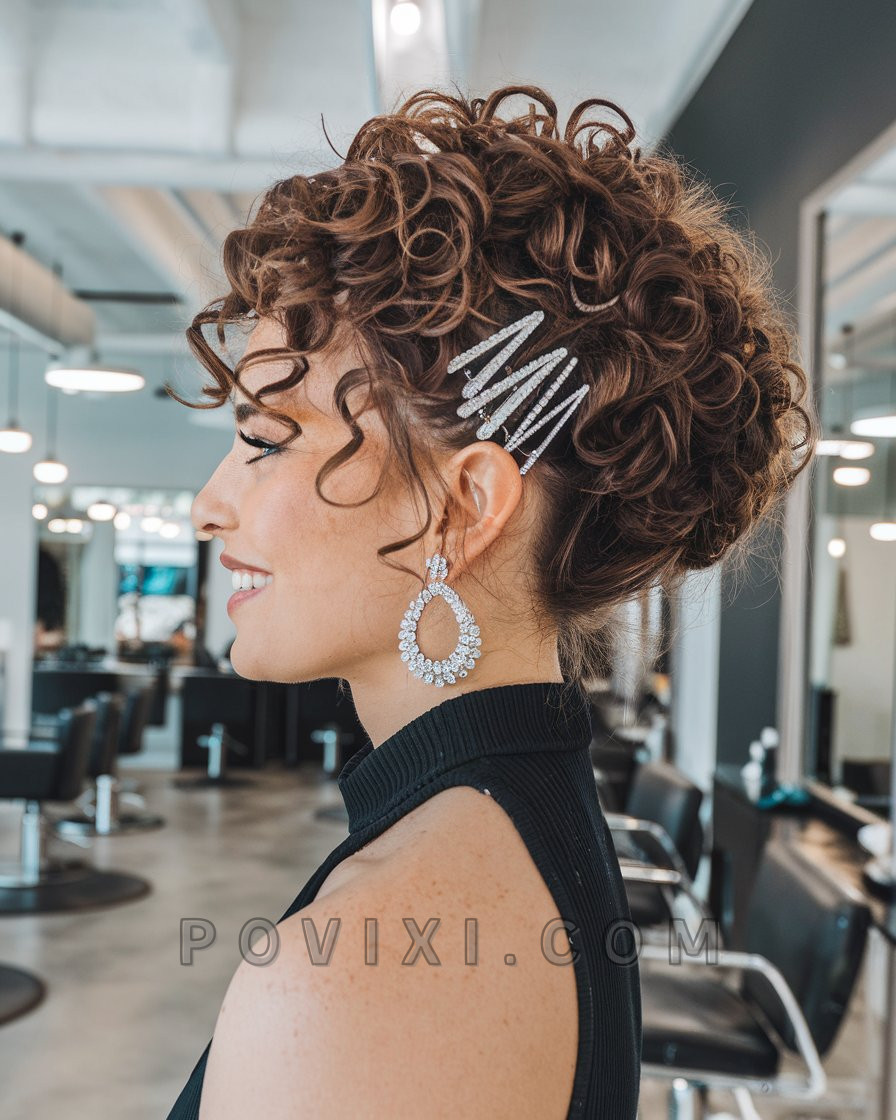 Formal Curly Updo with Statement Clips