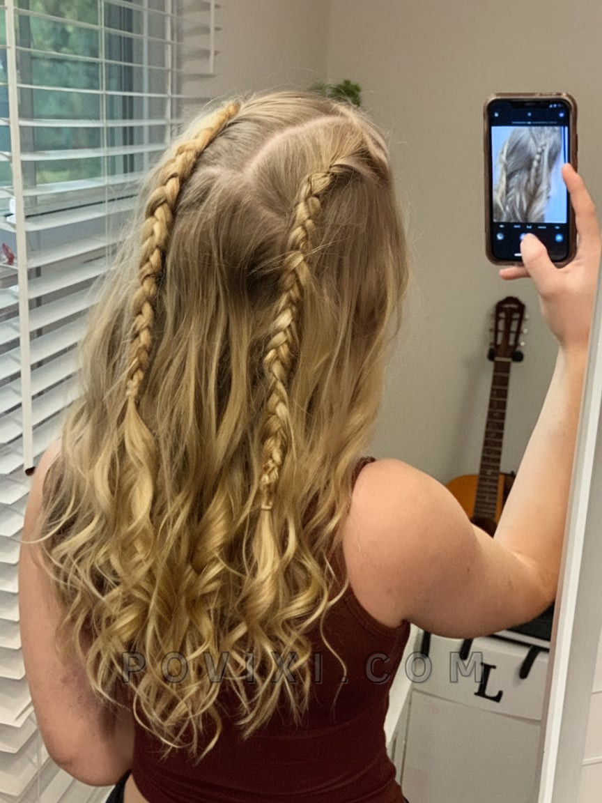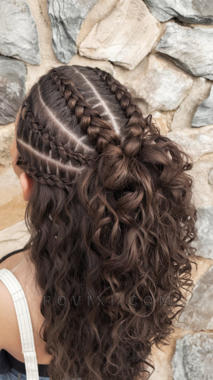 Half-Up Twisted Braid Buns with Loose Curls