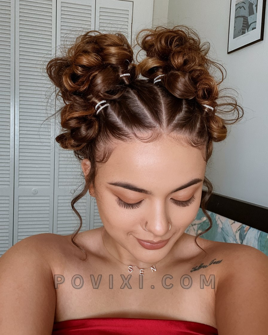 Space Buns with Spiral Definition and Hair Jewelry