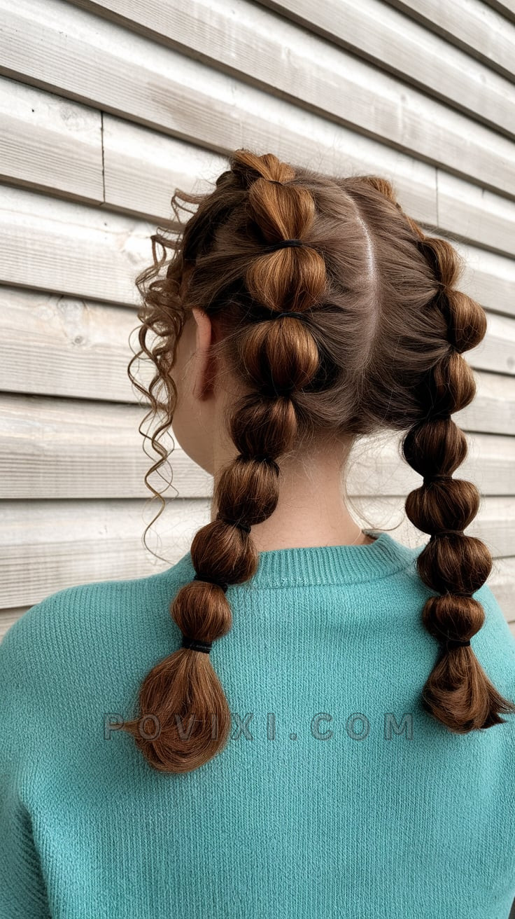 Puffed Bubble Braids with Curly Fringe