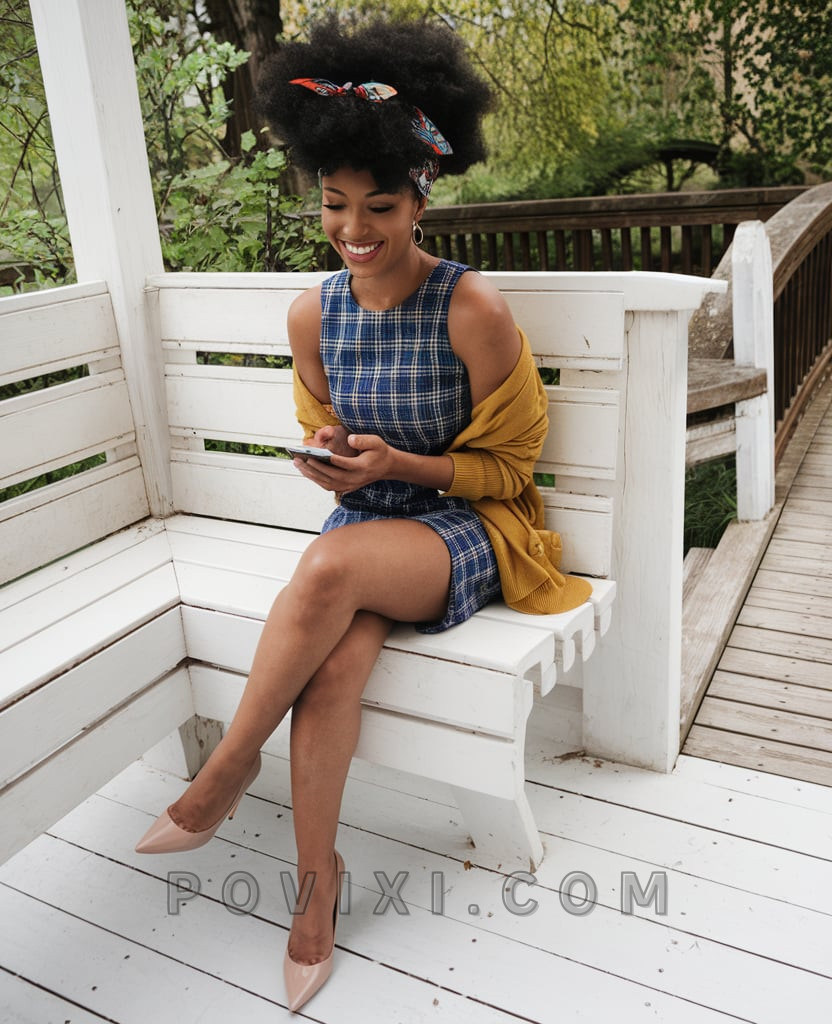 Plaid never goes out of style, and this fitted mini dress layered with a mustard cardigan is a cute yet practical summer outfit. Ideal for breezy evenings or early fall transitions, this look pairs well with nude heels and a patterned headscarf. A structured tote bag elevates the look, making it work-appropriate for casual Fridays.