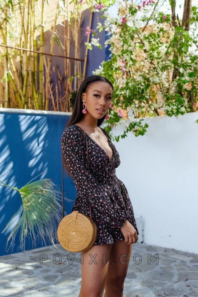This long-sleeve floral romper is the perfect mix of sweet and sultry. The deep V-neckline and cinched waist add a touch of flirtiness, making it a go-to for date nights. A romper is the ultimate one-piece wonder—effortless and stylish with no need for extra layers. Style it with oversized earrings and a woven crossbody bag for a boho-chic vibe.