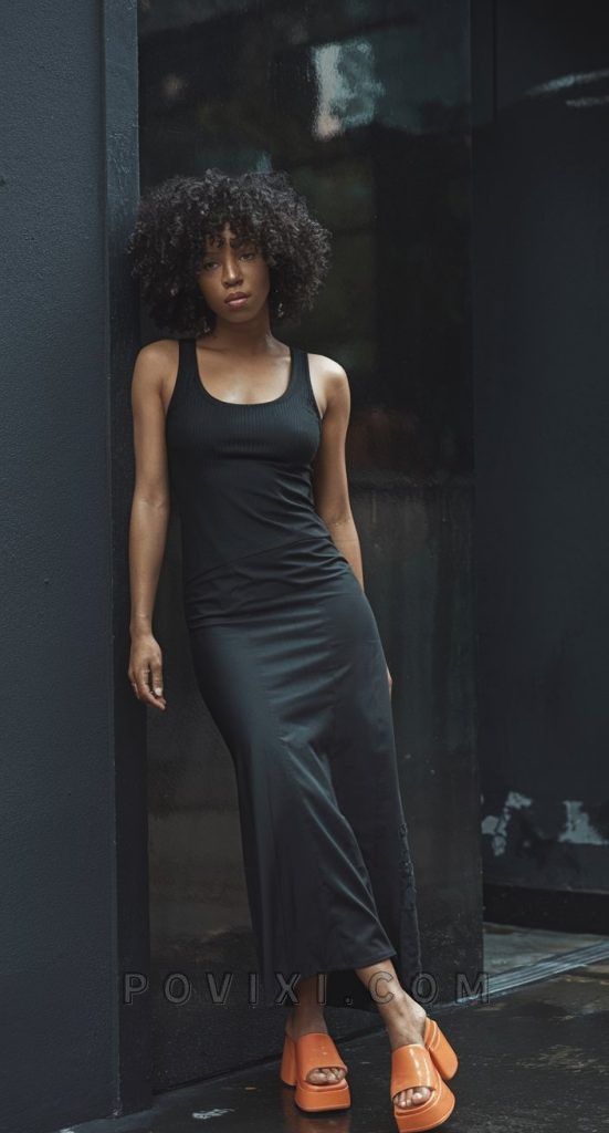 For those who love a minimalist yet striking look, a black slip dress is a must-have for 2025. The fitted silhouette drapes beautifully, making it ideal for summer nights out. Paired with sandals in a bold shade like orange, this look exudes confidence and effortless beauty. A great option for date nights or rooftop gatherings. This timeless piece can be elevated with a chic updo, dramatic eyeliner, and statement earrings. If you want to add a layer, opt for a light linen blazer to keep it breathable and polished.
