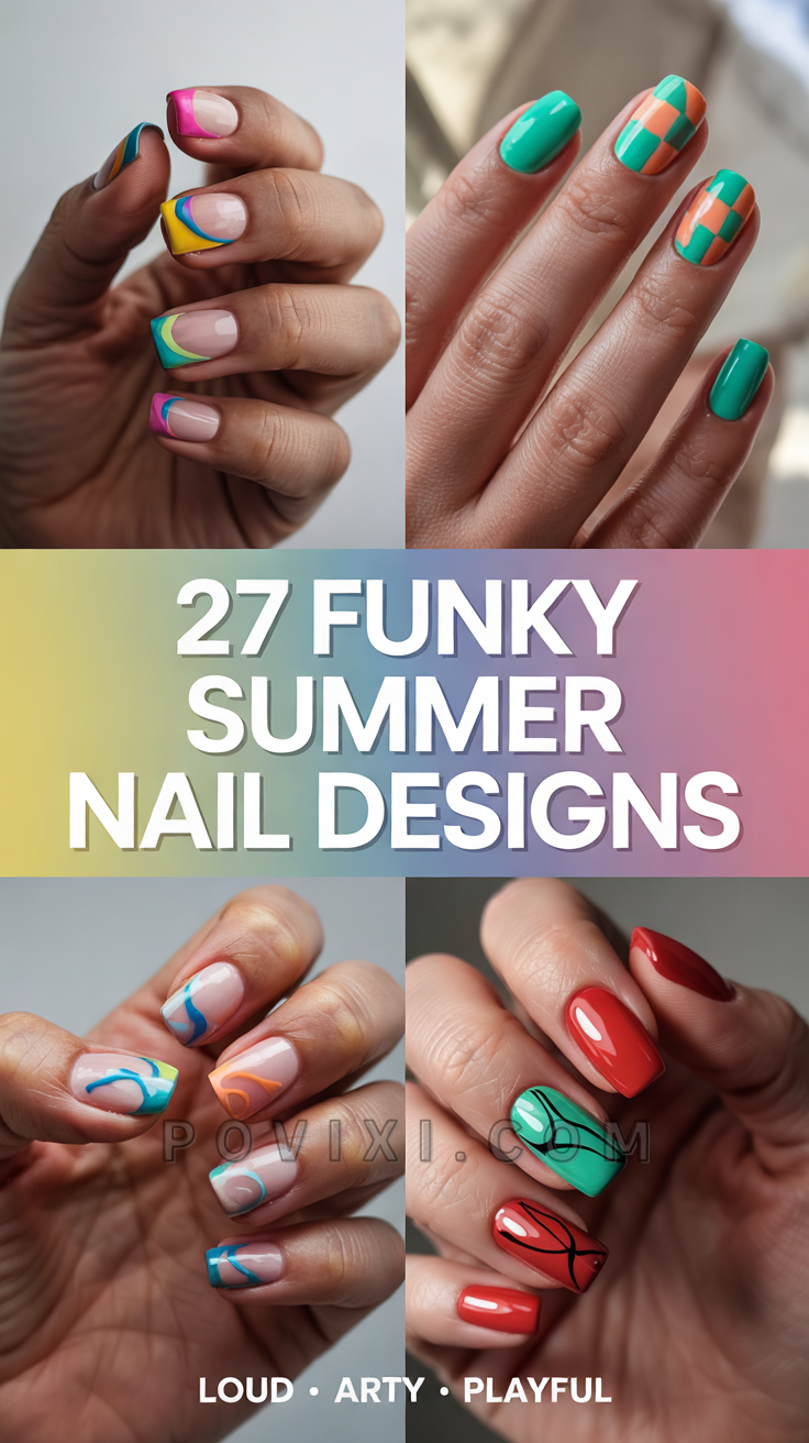 27 Funky Summer Nails 2025: Bright Color Combos, Almond & Square Nail Shapes, Long Coffin Ideas