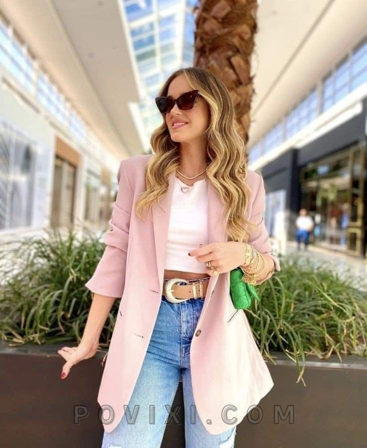 Blazers don’t always have to be structured! A pink blazer adds a fresh summer touch when layered over a striped tee and jeans. Ideal for women style inspiration classy, this mix of jeans and tailored outerwear creates the perfect balance of casual and professional. Go for minimalistic accessories and nude heels to keep the look refined.