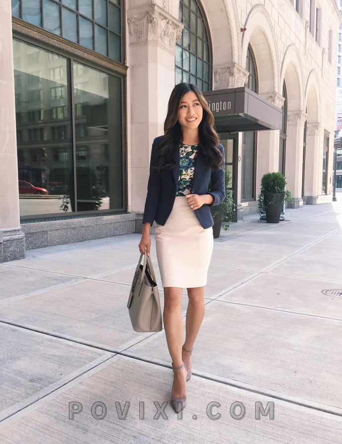 Navy Blazer with Pencil Skirt for Women Work Attire