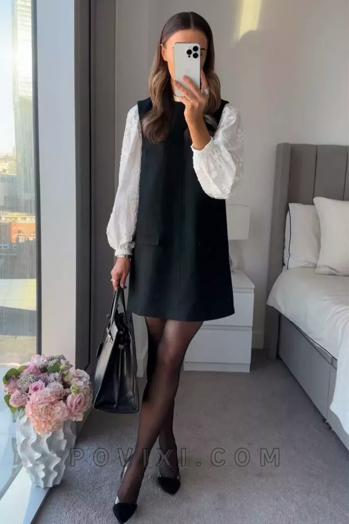 For those looking to incorporate work attire classy black pants in the summer months without feeling weighed down, a sleeveless black shift dress layered over a white blouse offers the perfect alternative. This ensemble is ideal for a young professional work clothes aesthetic that remains effortlessly stylish. Perfect for women over 50 and midsize professionals alike, this structured yet breathable ensemble is a go-to for year-round women style inspiration.
