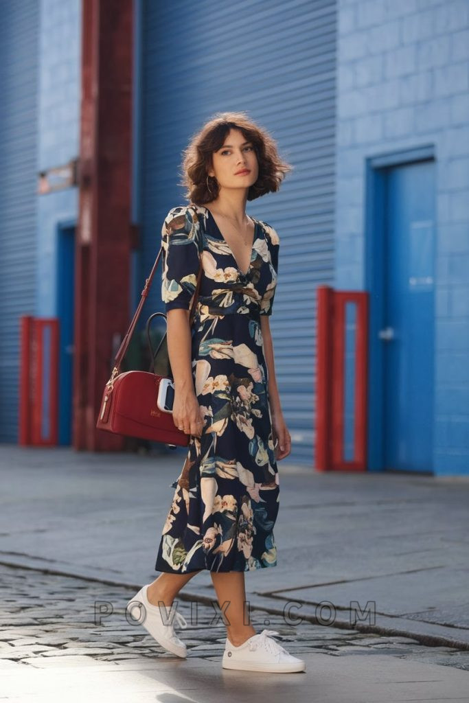 Feminine and Relaxed: Floral Midi Dress and Sneakers