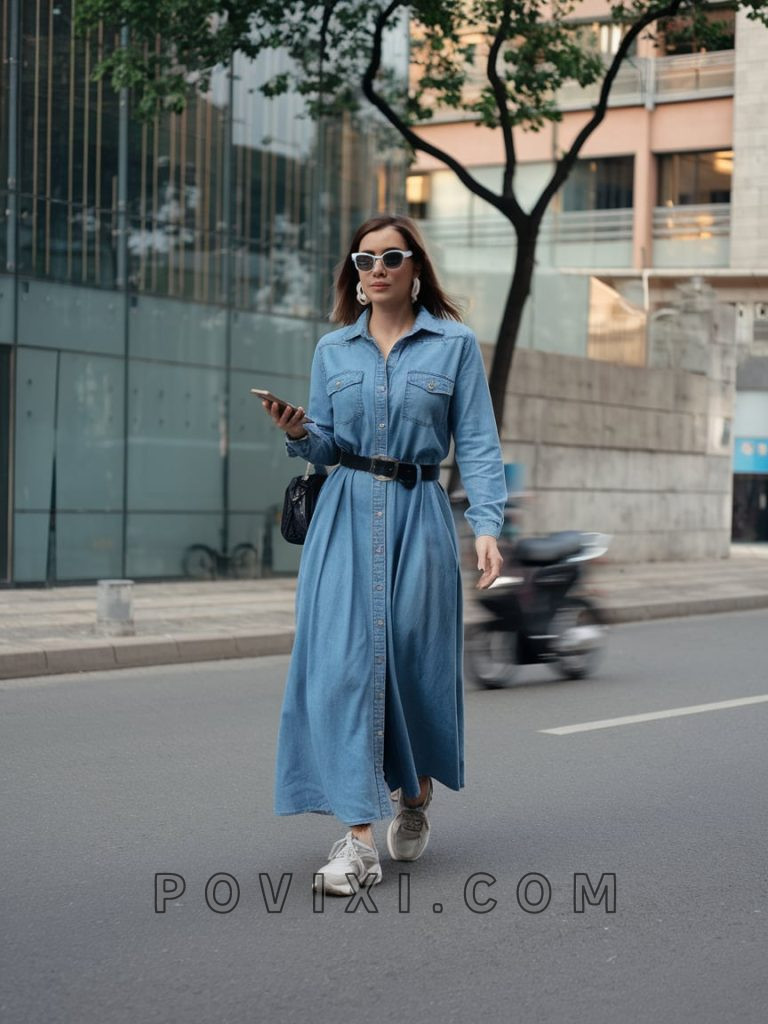 Denim never goes out of style, and 2025 is embracing the modest yet aesthetic charm of the denim maxi dress. With a belted waist for definition, this button-down design is both practical and fashion-forward. White sneakers make it city-walk friendly, while oversized sunglasses and statement earrings add a chic flair. Whether you’re heading to work or grabbing drinks with friends, this outfit is a plus-size friendly inspo that flatters every size while keeping it effortlessly cool.