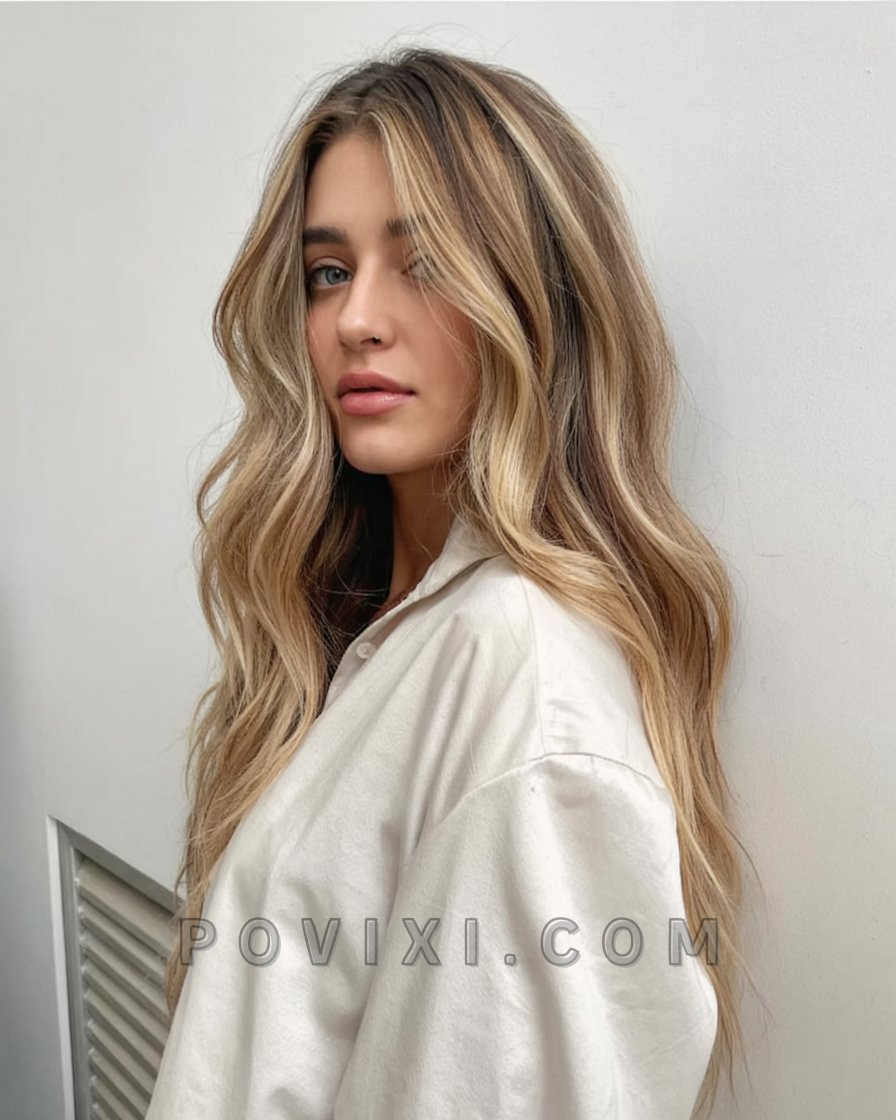 This style radiates West Coast ease and warmth. The soft golden highlights give a youthful, sun-drenched effect that feels right at home on vacation or at brunch with friends. It works beautifully on Brunettes ash brown or medium bases, subtly lifting the tone without going too bright. It’s the kind of hair that looks like it’s been kissed by the sun over several dreamy summers. Use a large barrel iron to create flowing waves, then break them up with your fingers and a touch of dry texture spray for that carefree finish.