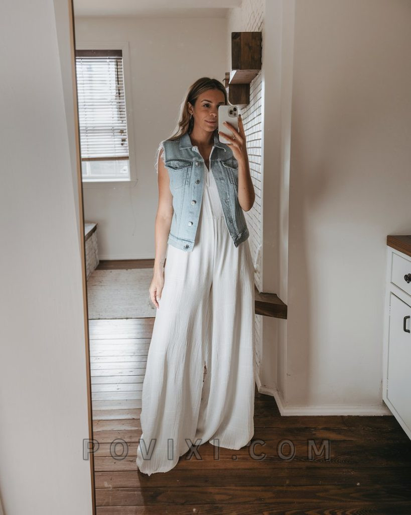 Breezy Wide-Leg Jumpsuit with a Denim Vest