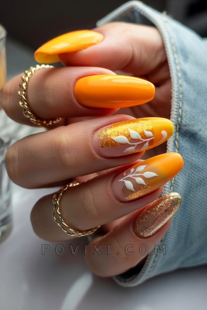 For the traveler with a love for golden skies and nature-inspired elegance, this mani blends juicy tangerine into warm yellow, topped with white botanical decals and glitter. It mimics a glowing sunset in the Tropical Pacific or an evening stroll through the streets of Italy. This is the perfect summer look for a relaxed-yet-polished vibe. These gel nails are versatile enough to wear with linen jumpsuits during the day and satin slip dresses by night. Bonus? The shape and length are ideal for moms on-the-go who still want their hands to look fabulous in every vacation photo.