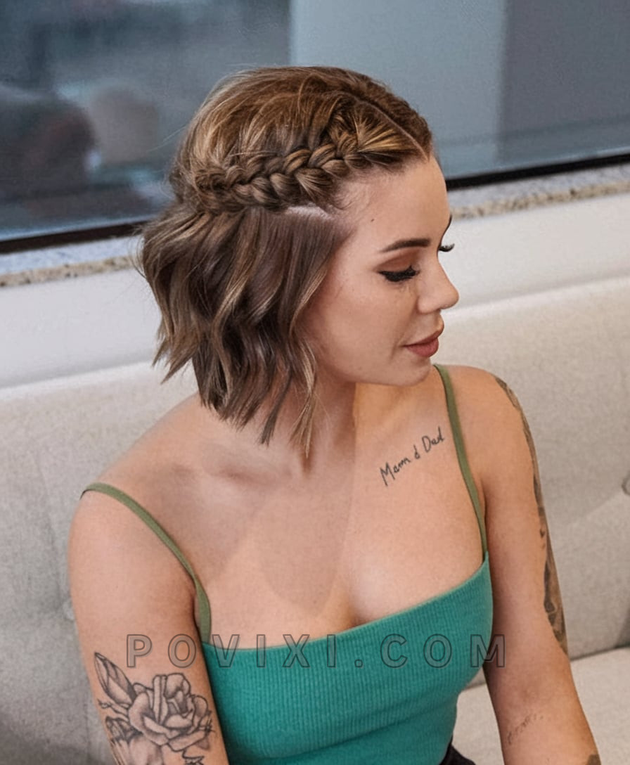 A thick braid swept across one side of the head instantly elevates this wavy bob style. This stunning hairstyle walks the line between ethereal and edgy, depending on your outfit choice. It pairs beautifully with tank tops or flowy sundresses. Whether you’re heading to a dinner party or simply grabbing iced coffee, this one says, “I made an effort,” even if it only took you 10 minutes.