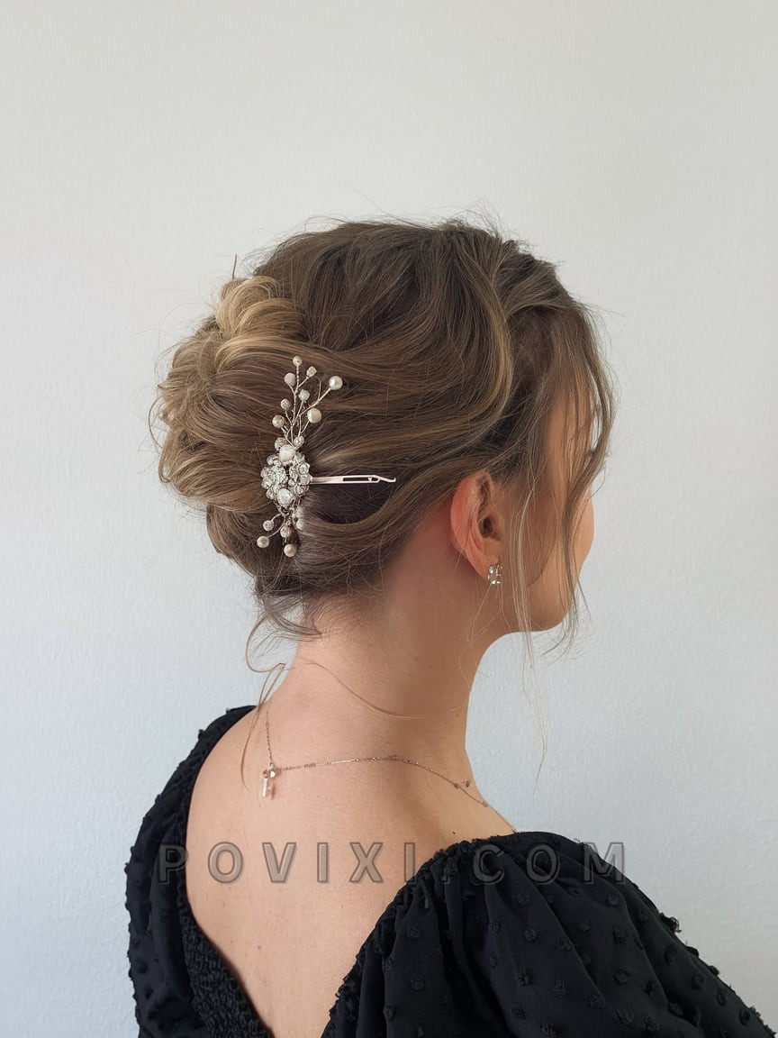 This beautifully twisted updo gets a touch of bridal elegance with pearl and gem accents. But don’t save it just for formal occasions—it’s also a stylish pick for cocktail hour or an upscale rooftop dinner. If you’re over 50 and want something timeless yet on-trend for summer evenings, this look is both easy and stunning. It’s all about those soft, romantic shapes around the nape of the neck.