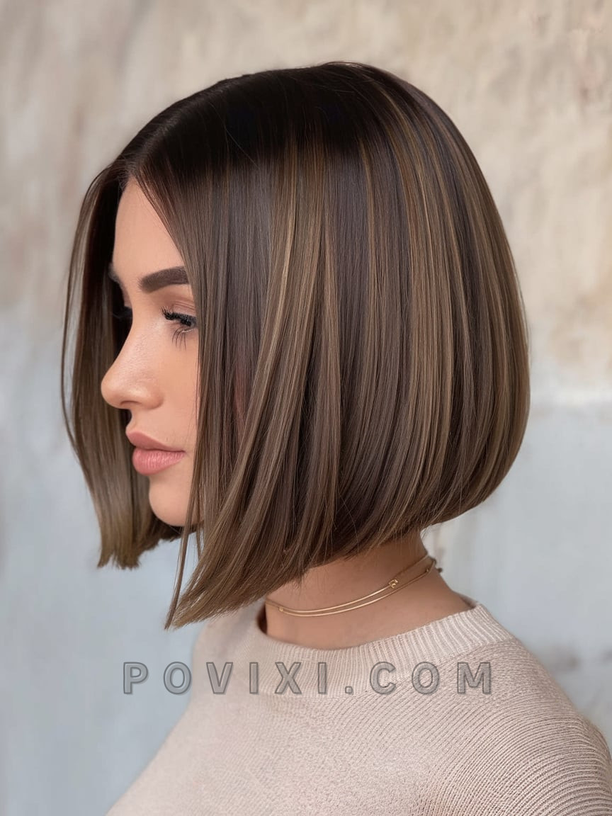 Minimalist, sharp, and ultra-modern—this stunning blunt bob brings runway polish to real-life fashion. The slightly angled cut adds volume and shape, making it a great choice for those who want structure. It’s a simple style that thrives on shine and health, so a good serum is your best friend here. This is for the woman who loves clean lines and timeless elegance, whether she’s heading to the office or styling a dinner date look.