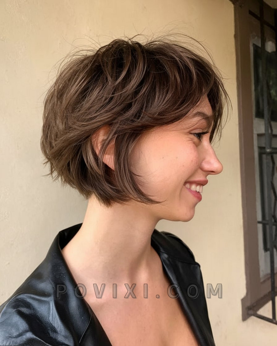 This shoulder-length wavy bob style is all about letting your texture shine. With soft layers and a middle part, the natural waves feel both carefree and refined. This casual hairstyle is stunning in its simplicity and ideal for women who want something easy but impactful. Whether you’re heading to a farmer’s market or grabbing lunch with friends, this look delivers low-maintenance beauty and a touch of spontaneous charm.