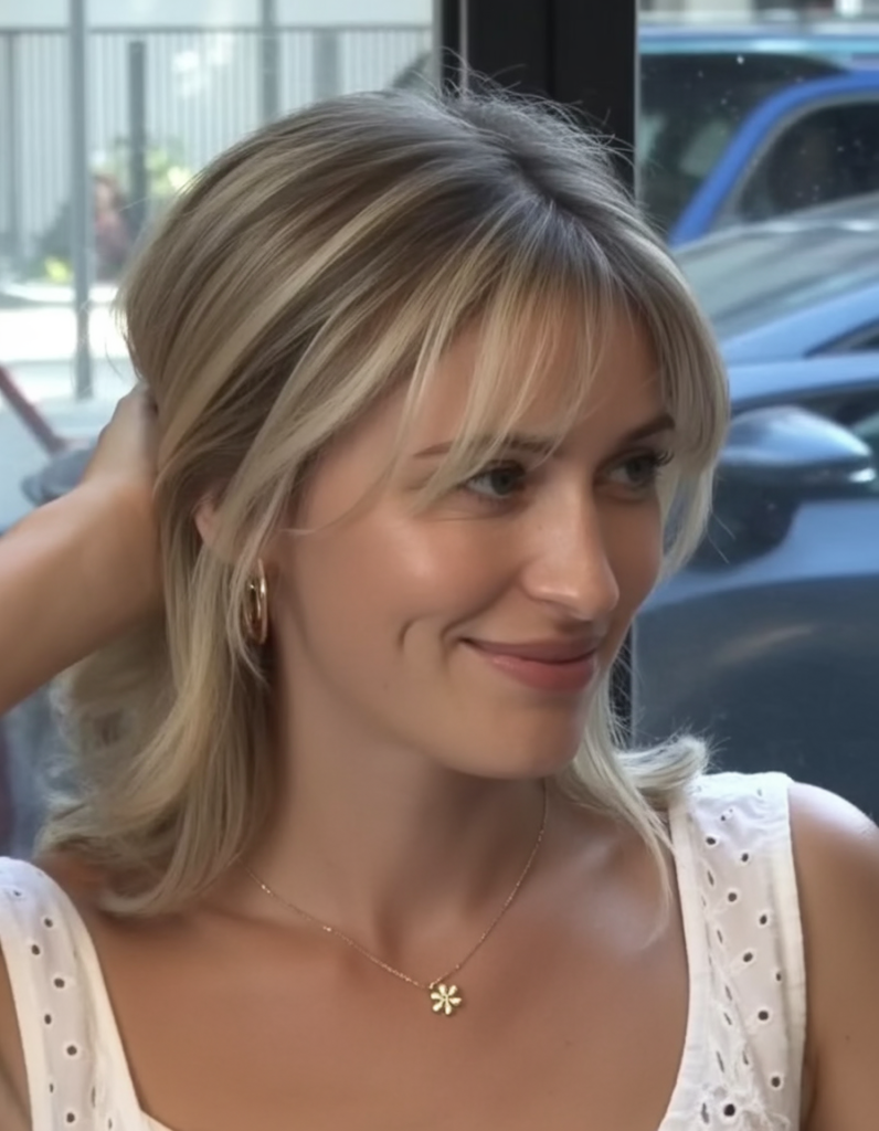10. Mid Length Blonde with Wispy Bangs