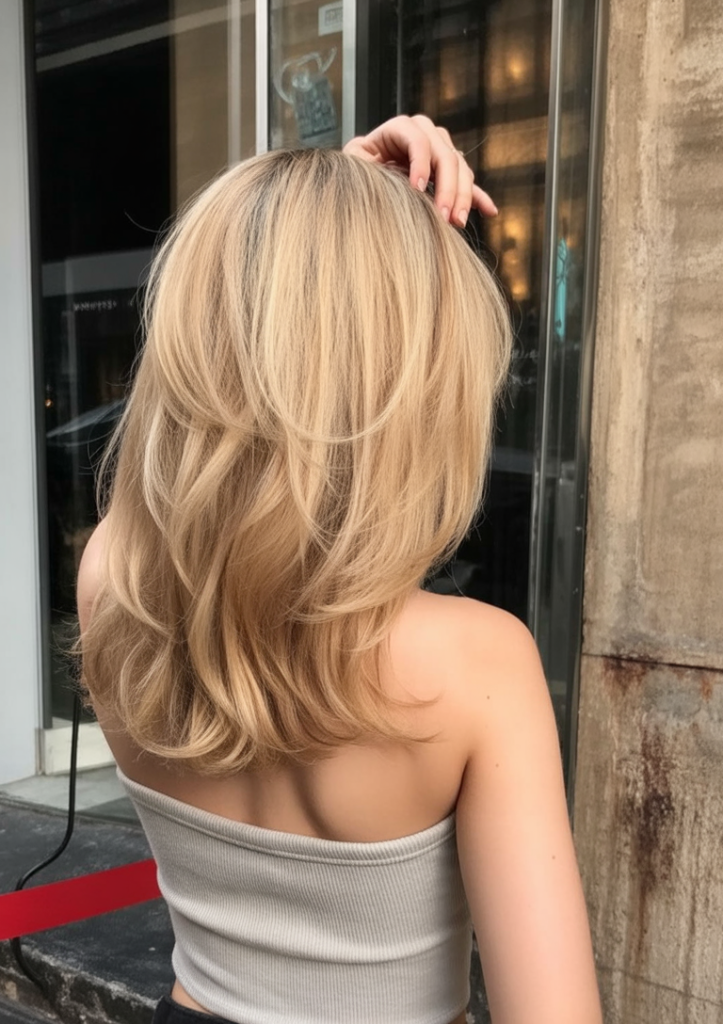 25. Layered Blonde with Root Shadow