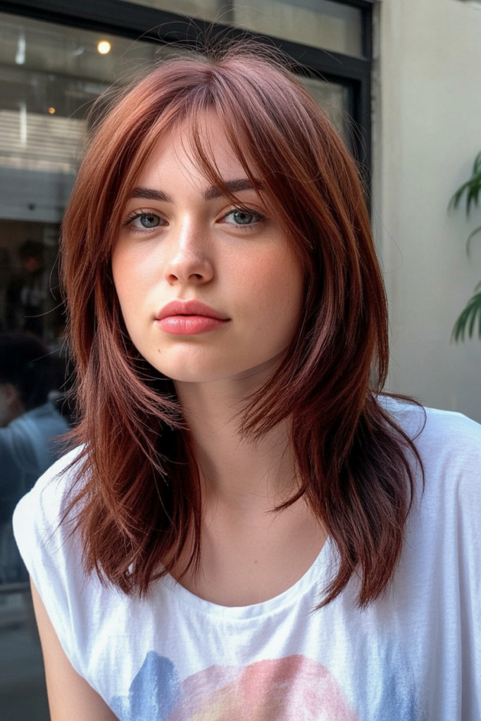 This cut is ideal to those with thin fine hair as it gains volume without much length being sacrificed. The long curtain bangs establish a gracious outline around the eye area and it is therefore particularly appealing to the ladies in glasses or with a round face shape. This feels lighter and fuller in comparison to a blunt mid length cut. It is a blend of timeless designs and on-trends in case you want to update your style in 2025.