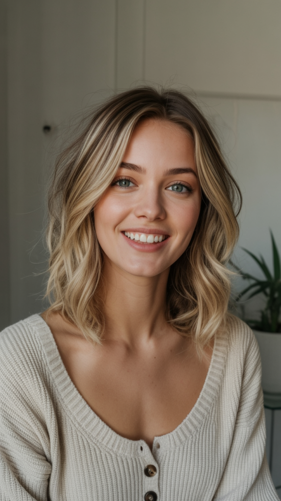 3. Wavy Blonde Lob with Face Framing Highlights