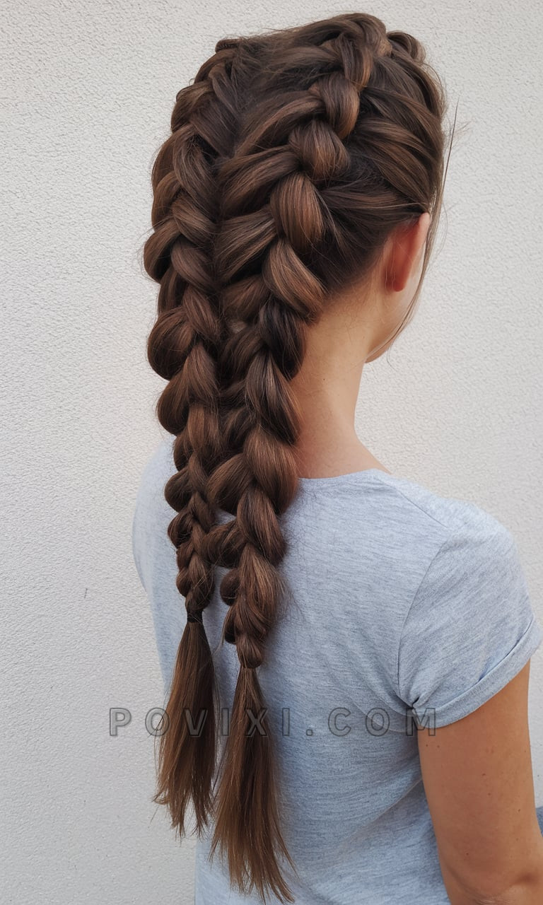 There’s no denying the power of a perfectly done Dutch braid—and this double braid version takes it up a notch. The braids are thick, voluminous, and tightly woven, giving the illusion of added fullness even on finer textures. Ideal for long hair, this style can hold through a hot summer workout or double as an elegant twist for a weekend brunch. For a lasting hold, use a sculpting mousse before braiding, and gently tug at the sides of each section for that signature fluffy finish.