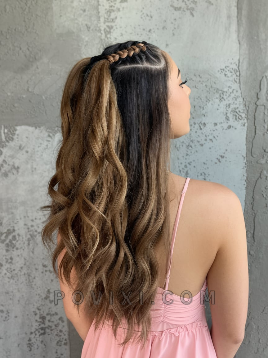 Nothing says summer like a boho-inspired hairstyle. This half-up look blends loose waves with small braids that add texture and a free-spirited vibe. It’s a stunning choice for beach weddings, music festivals, or garden parties. Bonus: it works perfectly with blonde highlights or balayage, enhancing the sun-kissed effect.