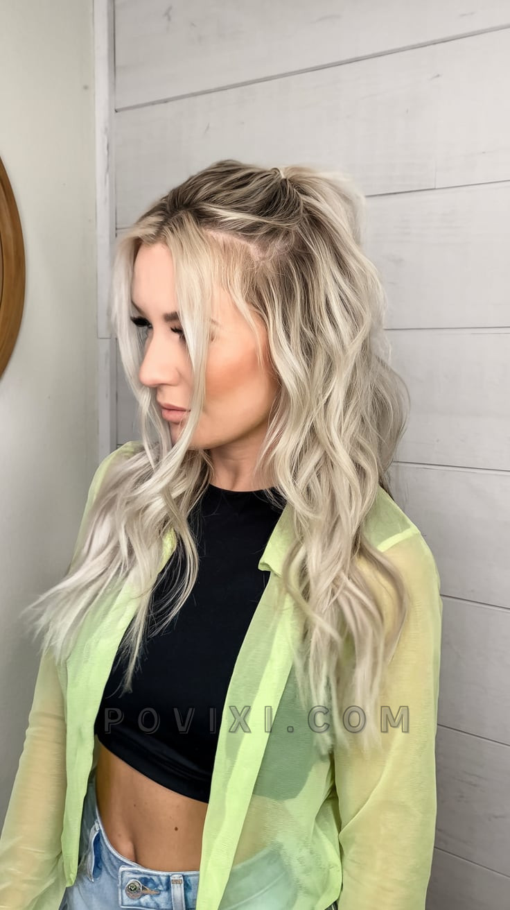 Add some throwback glam to your summer with this voluminous half ponytail. The defined, glossy curls and lifted crown give a nod to vintage Hollywood, while still feeling modern and bold. Great for long hair, this hairstyle is perfect for summer parties, romantic dinners, or even vacation evenings. It’s equal parts flirty and refined.