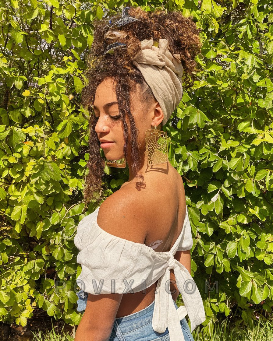 This style is bold, expressive, and unapologetically regal. Thick, textured locs are styled high with a striking metallic wrap, making it a standout option for Black women who embrace their natural hair. The look is deeply rooted in cultural tradition yet modernized for today’s fashion scene. It works on short hair and afro textures and offers both function and beauty on hot days. You can wear it casually with denim or elevate it for formal events by coordinating your wrap with statement earrings.