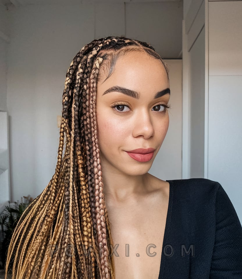 When it comes to protective styles, box braids remain undefeated. This version gets an update with a crisp side part, giving it a grown-woman glow. Perfect for everyday wear or vacation glam, it works best on medium hair to long hair and transitions easily from day to night. Add cuffs or beads for personal flair or keep it minimal for a clean, refined finish. For maintenance, keep your scalp hydrated with a light oil to prevent dryness during peak summer temps.