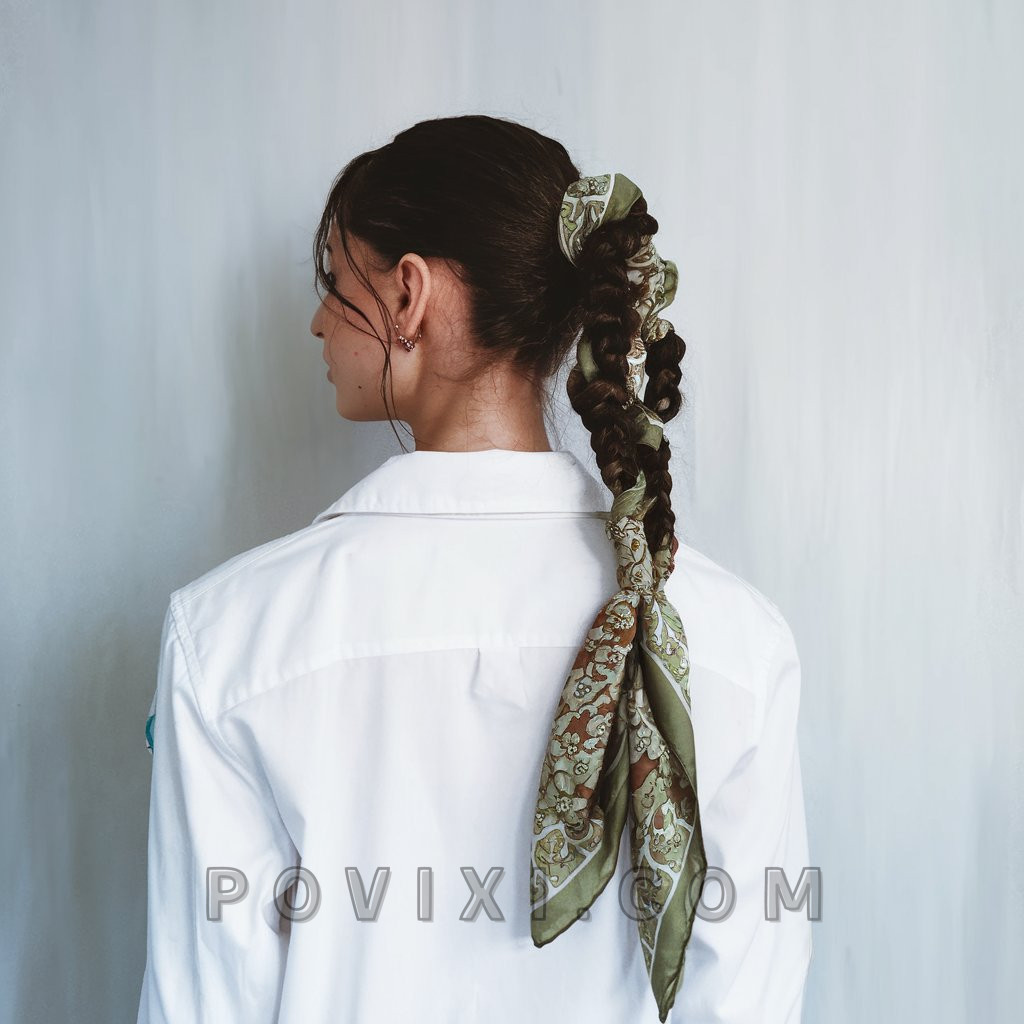 Equal parts boho and polished, this ponytail bubble braid features a wrapped scarf woven throughout, adding a pop of print and elegance. It’s a great go-to for medium hair or shoulder length strands when you’re looking for a summer style that’s low effort but high impact. The scarf elevates the ponytail instantly—try it with floral, paisley, or bold color depending on your outfit. This style is the definition of simple meets stylish and takes under ten minutes to recreate.