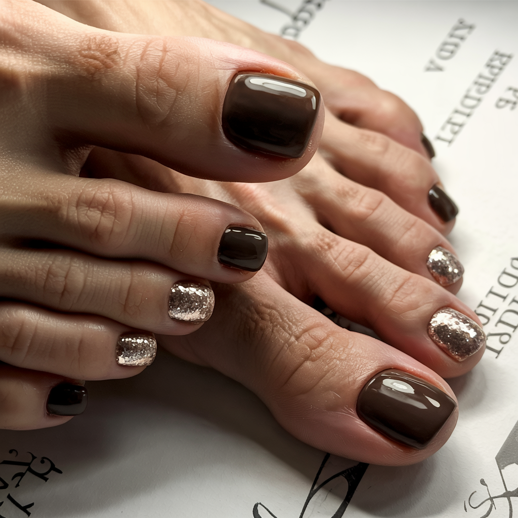 1. Chocolate Brown and Glitter Contrast