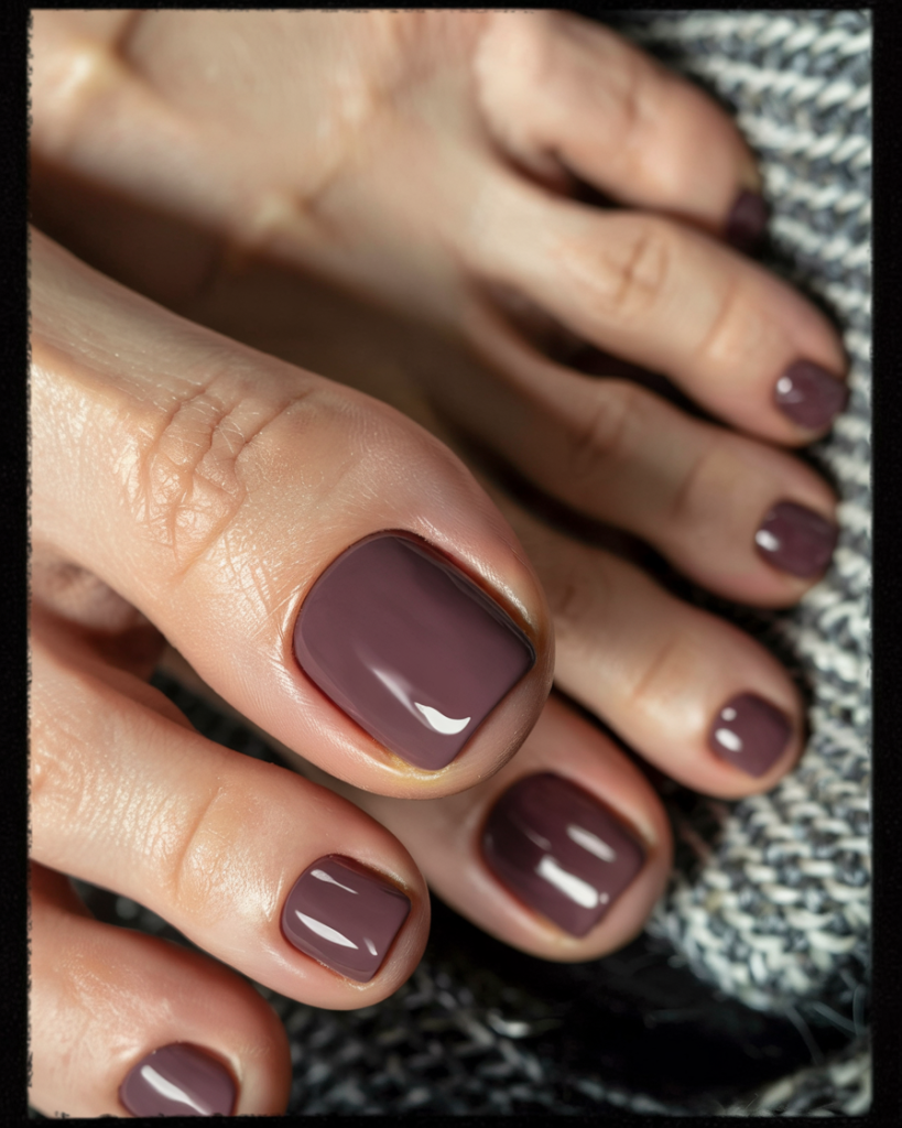 This is an intelligent choice of color in pedicures, particularly in the autumn, from ladies who are not into glitz and glamor. It also looks particularly good on neutral undertones and olive tones and goes with a sandal or a pair of fluffy slippers just as well. It will be shiny with a top 2025 gel finish, which lasts weeks.