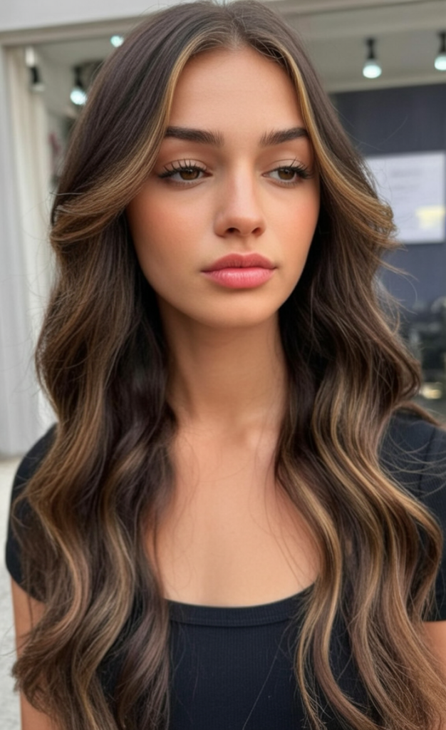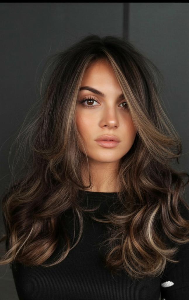 Naturally dark straight or wavy hair on a brunette will perfectly suit this Balayage type since it is so low maintenance. Since the highlights are painted in using a freehand technique, there will be no harsh regrowth lines and you can easily extend the time between salon visits. It will be a stylish hair decision in fall 2025 because everyone loves the added dimension and depth but is not keen on the fact that hairstyles require regular touch-ups.