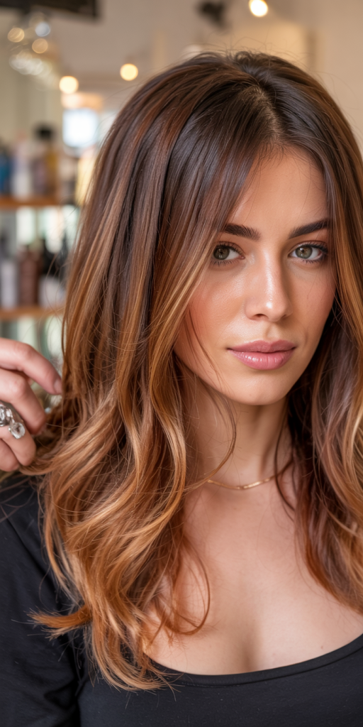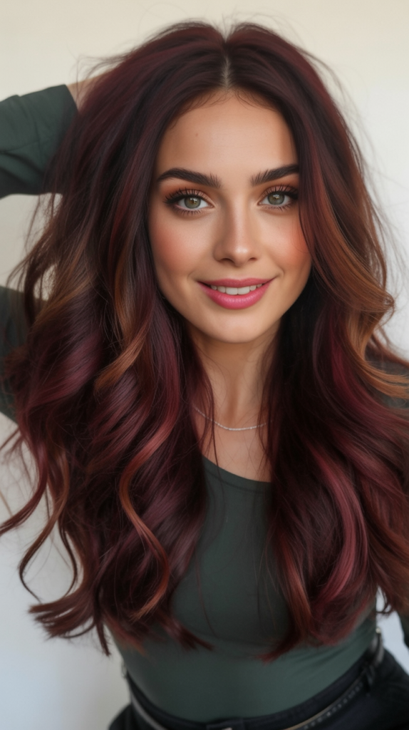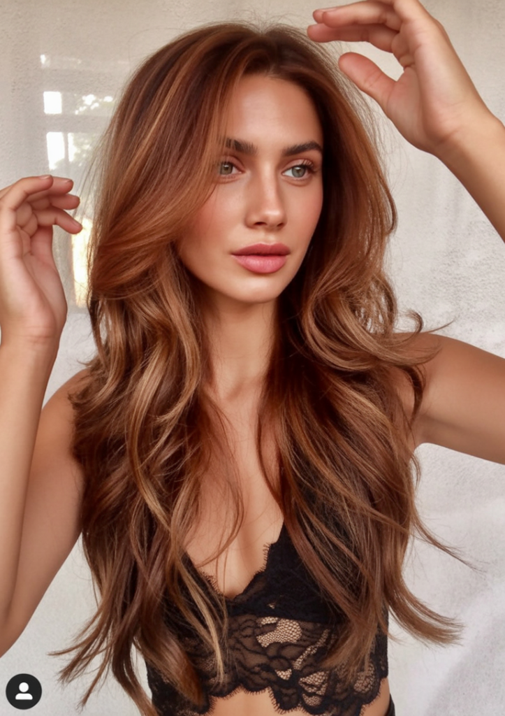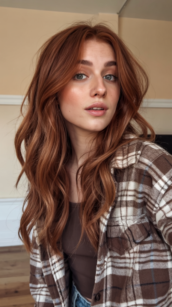When brunettes desire a little gleam and radiance, there really is nothing better than red copper waves. A rich, but lush and dimensional shade that can be seen with a tint of caramel in the light- it has an earthy glow that simply feels as a spot-on shade for fall 2025. The style is quite warm but edgy in nature which makes it perfect to the person who is tired of looking glum and wants to shock the masses.