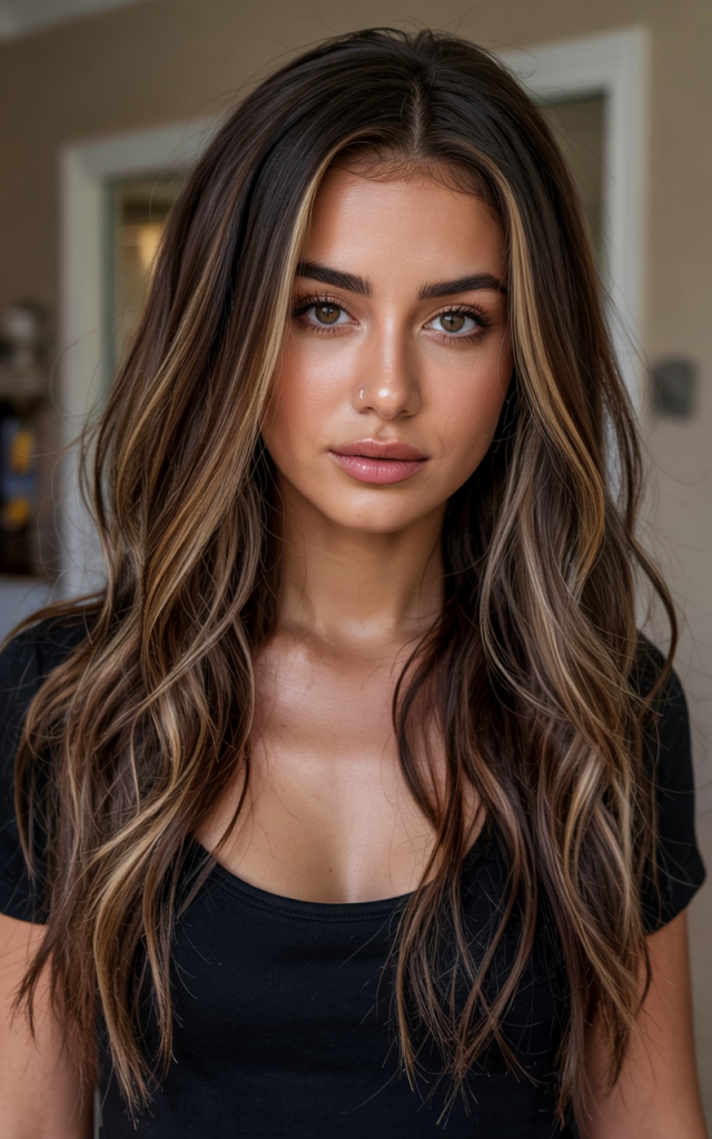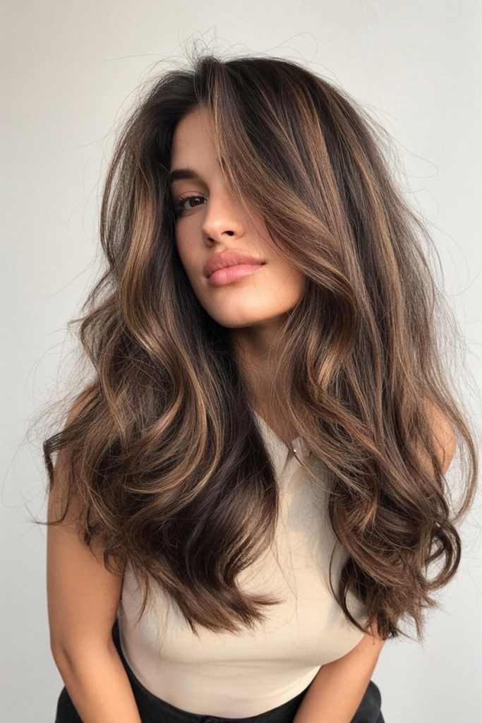 This style is a fantasy to brunette ladies who desire dimension, yet want it less harsh than platinum or ash color. It will suit long wavy hair due to its lightness, so that hair can freely flow. Lighter at the ends, it needs to be paired with lightweight oil to keep the ends glossy because it is the perfect blend of chic yet approachable.