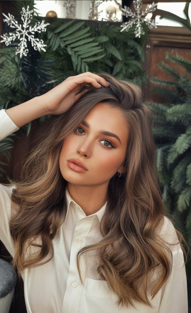 Smokey brunette with ash hair highlights is one of those stylish, non-stressful hairstyles that pleasantly catches the eye. The deep base is lightened with the cool streaks which do not dilute the richness of the brunette look. It is alluring, contemporary, and a great choice of winter-going-into-spring 2025.