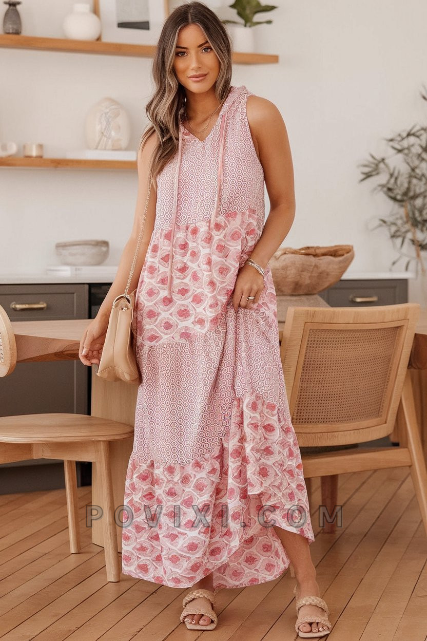 Nothing screams summer like a breezy, bohemian-inspired maxi dress. The pink floral print combined with soft, flowing fabric creates an ultra-feminine look that works for women over 50. Ideal for plus size figures, this dress is lightweight and effortlessly elegant. Paired with woven sandals and a neutral handbag, this is a go-to outfit for beachside brunches or an evening stroll. Layer a cropped denim jacket for cooler evenings.
