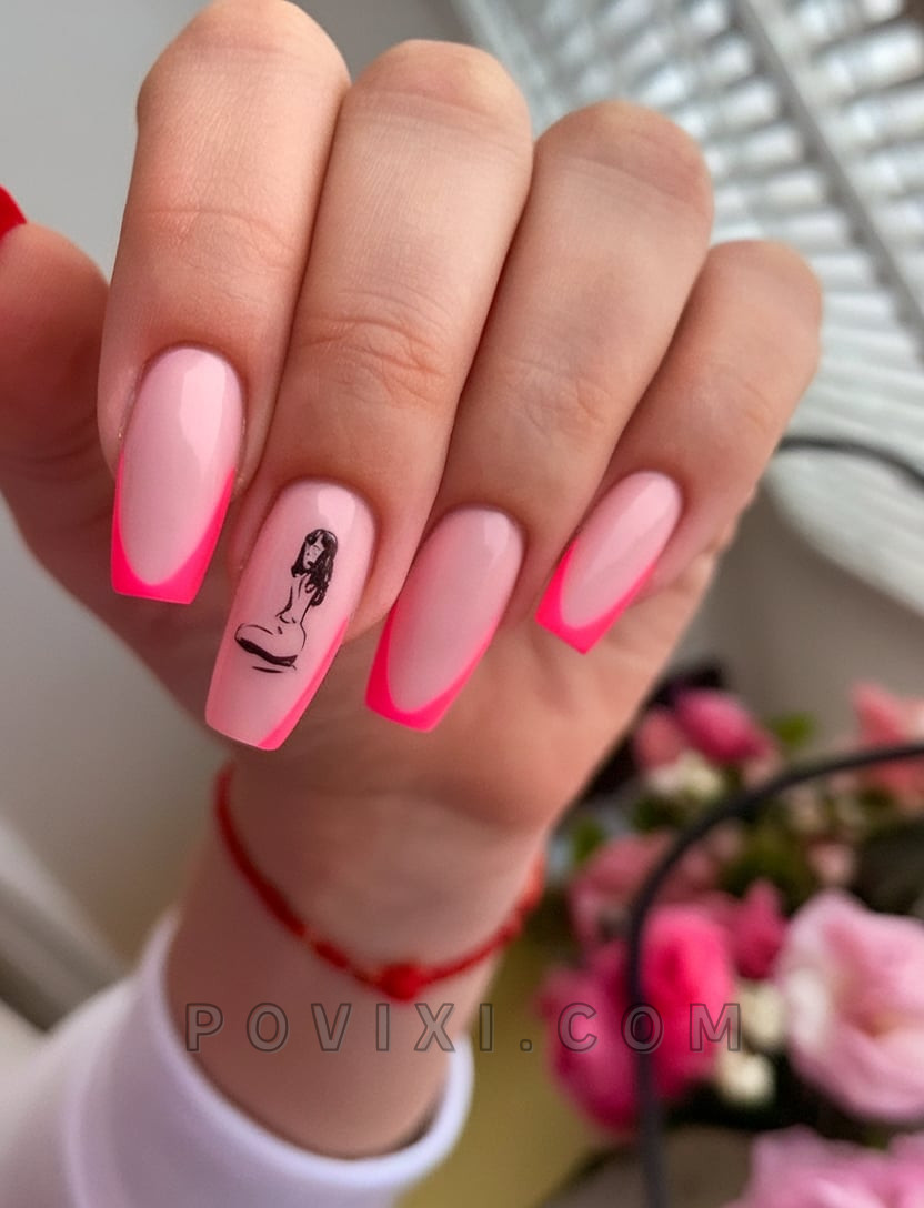For the ultimate classy look with a twist, this look combines a French tip structure with a bold pink edge and a stunning female silhouette. It’s feminine, fierce and perfectly 2025. The style offers an exceptional balance between modern minimalist design and artistic storytelling, making it suitable for both creative professionals and fashion-forward women in their everyday lives.