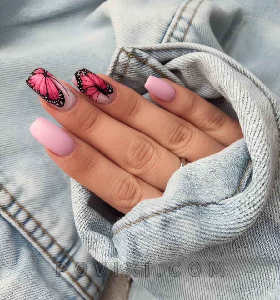 Butterfly Wings and Soft Pink Elegance