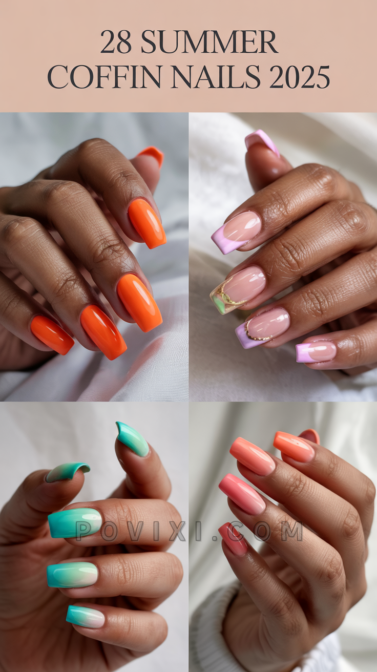 Summertime brings fashion updates to your clothes as well as a new look to your nails. Coffin nails have maintained their position as the top style for fashionable manicures this year. Because of their graceful, pointed shape, coffin nails work equally well as a base for sophisticated designs or wild, tropical expressions. This article presents 28 gorgeous summer coffin nail designs for 2025, ranging from sophisticated and aristocratic to avant-garde and edgy, allowing everyone to choose between short, medium and long nail styles.