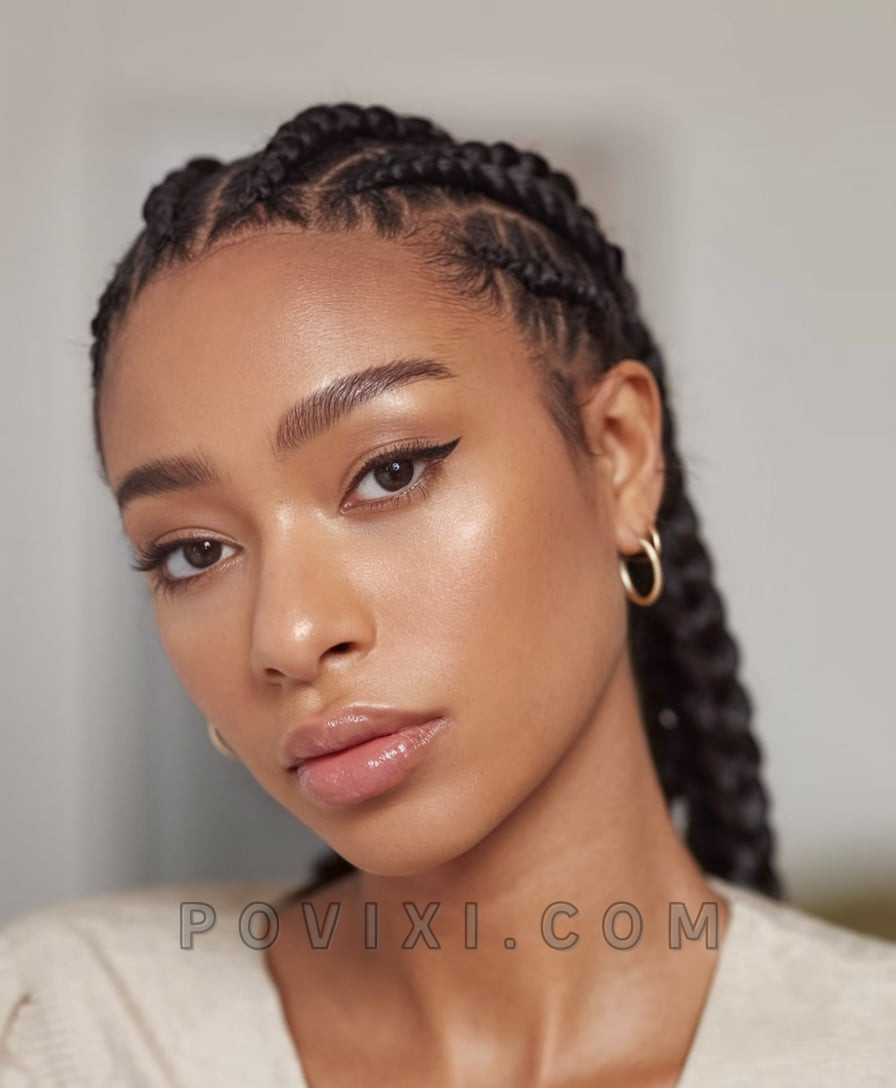 Cornrows are the MVP of easy, low-maintenance summer styles, and this version gives a sophisticated twist. Laid baby hairs and crisp parting make the entire look sleek yet practical. It’s a style that transitions from a work meeting to happy hour effortlessly. For added edge, combine it with sharp winged eyeliner or glossy lips. This is proof that braids can be minimal and still absolutely magnetic.
