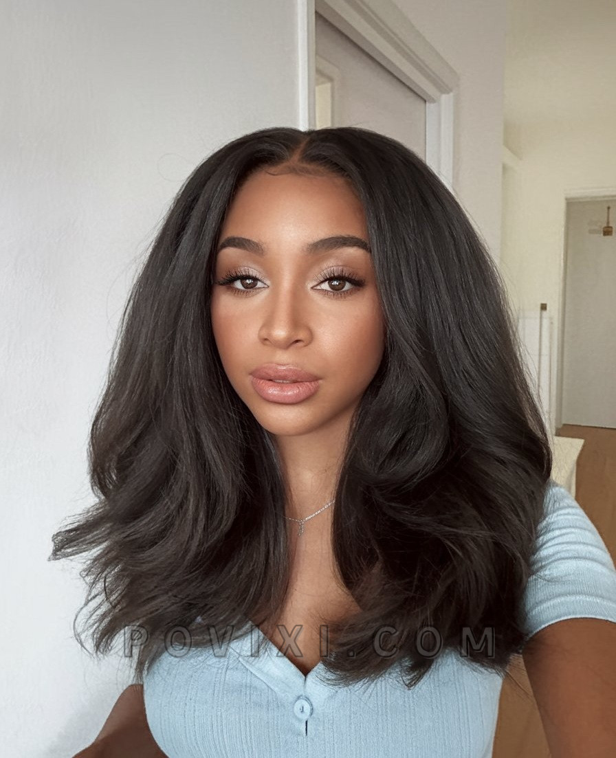 Here’s the definition of bouncy and bold. This weave or blown-out wig delivers thick, shiny volume with layers that move. The center part keeps it modern and flattering, making it the ideal “main character” hairstyle. It’s a head-turner that doesn’t try too hard—whether you’re pairing it with your favorite jeans or a figure-hugging summer dress. If you’re into wigs, this is a flawless choice for a polished look that still feels playful.