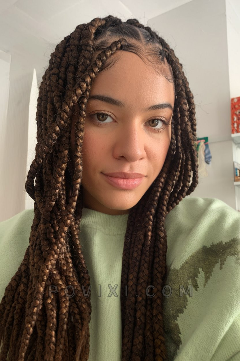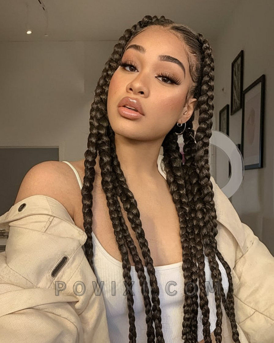 You can never go wrong with classic braids, and this style featuring long box braids with a sleek middle part and swooped baby hairs is a summer must-have. The length provides styling versatility — from ponytails to buns to half-up styles — while the neat parting keeps it looking clean and sharp. Box braids are more than a protective style — they’re a declaration of cultural pride and modern chic. Ideal for beach vacations or weekend getaways, this look keeps hair tucked away while letting your personality shine through.