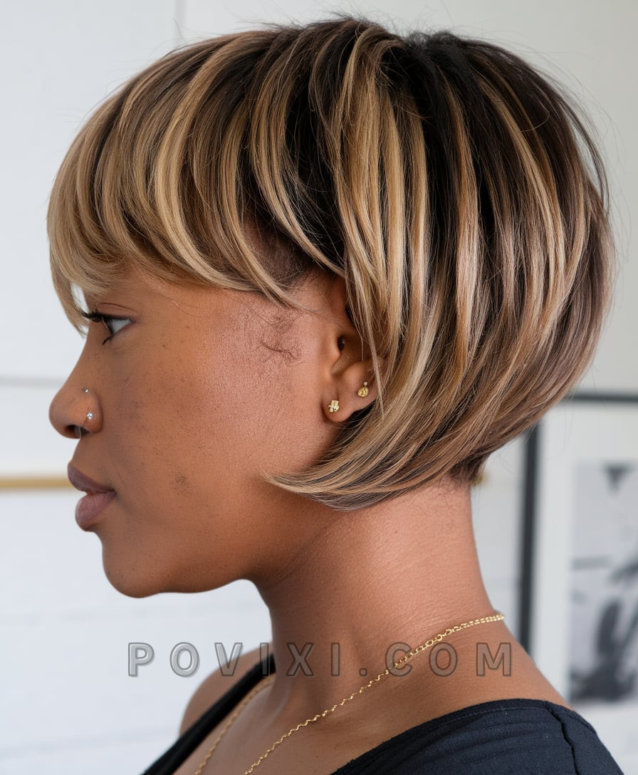 This short, sun-kissed blonde bob with tapered layers is the embodiment of summer sass. It’s edgy yet sophisticated, and the warm tones flatter melanin-rich skin tones beautifully. The back is stacked for volume, while the longer front creates a sweeping silhouette. It’s a fantastic choice for busy professionals or moms on-the-go who still want to look polished with minimal effort. Plus, the shorter length helps beat the heat — literally and figuratively. Light-hold wax or pomade will help maintain the shape and definition without weighing the hair down.
