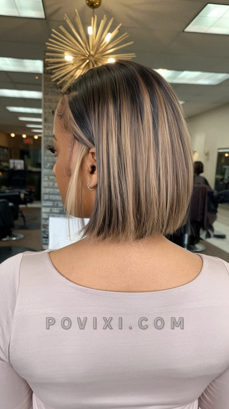 This look is all about contrast. The sleek weave bob boasts a cool blonde tone that pops against deep roots for a grown-in, trendy effect. It’s smooth, symmetrical, and razor-sharp — delivering major high-fashion energy with minimal daily upkeep. Ideal for those wanting a bold transformation without going too wild on the cut, this hairstyle says, “I’m here to slay,” even when you’re just out grabbing coffee.