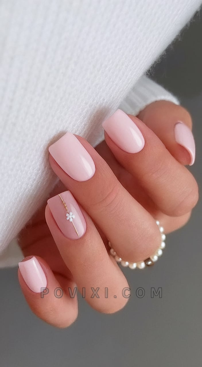 This look redefines elegance. A shade of pink blush covers all the square nails, while a tiny daisy and a metallic gold stripe on a single nail create the real magic of this design. The design presents a delicate touch with a sweetness that remains ageless. The simple design for 2025 will impress without compromising your desire for simplicity. The design works equally well for bridal ceremonies, professional boardroom events and baby shower celebrations. Wear this mani with pearl accessories and silk blouses or a cashmere cardigan.