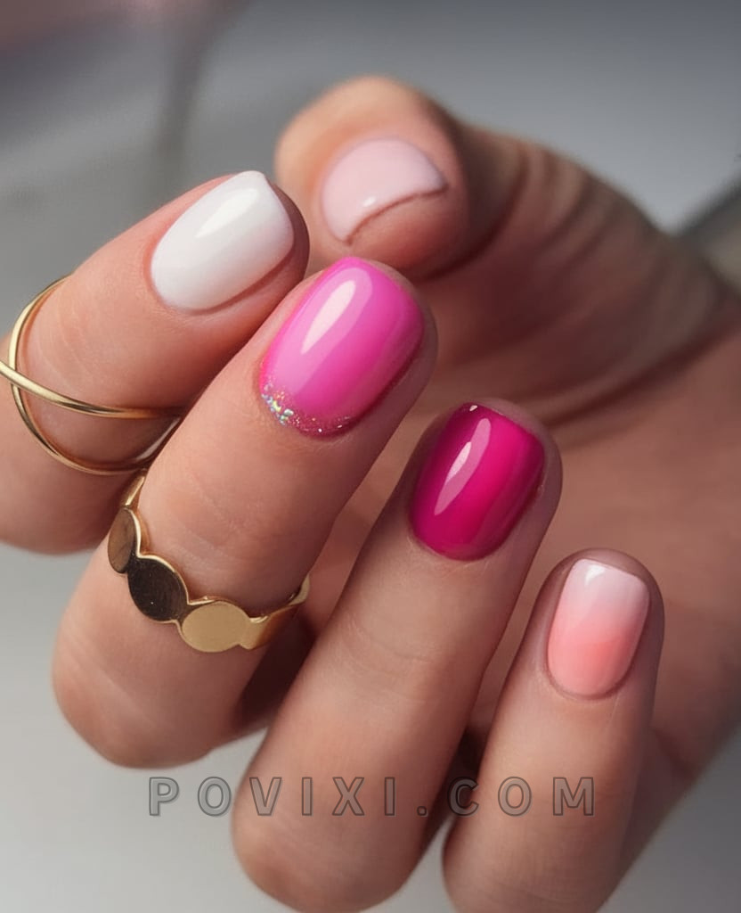 The gradient transformation of pink shades from light blush to rich magenta is a must-have for anyone who prefers minimalist, extremely sweet nail designs. The round design creates a friendly appearance that goes well with the glossy finish that provides a subtle shine. This gel effect mani has clean lines with minimal styling, allowing professionals to maintain a professional look with added color. The summer season gives people the opportunity to experiment with new nail shapes and this look provides an ideal opportunity.