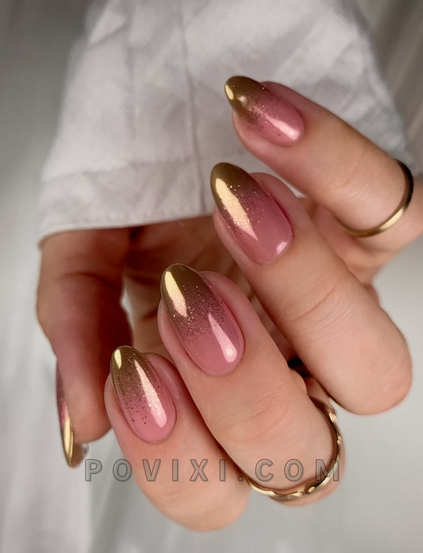 For brides who want a touch of glamour, this gold and pink ombre design is a modern masterpiece. The smooth gradient effect from soft pink to shimmering gold creates a luxurious aesthetic that catches the light beautifully. The gold accents in this manicure make it ideal for those who love a sophisticated yet modern vibe. It works especially well for fall and winter engagements, as it pairs perfectly with seasonal tones like warm neutrals, metallics, and deep reds. This is the perfect nail design for brides who want something between simple French manicures and bold statement nails. It pairs well with diamond rings and warm-toned jewelry.