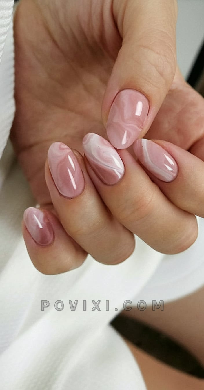 If you’re drawn to dreamy aesthetics, these pink ombre marble nails are an ethereal choice. The gentle swirls in different shades of pink add dimension and movement, creating a truly one-of-a-kind look. This simple beautiful style captures elegance with a modern twist. The high-gloss finish makes these nails stand out, perfect for showcasing an engagement ring. The fluid marble effect mimics delicate silk patterns, creating a soft, luxurious touch. This design is fantastic for both summer and winter, depending on how you style it, making it a versatile choice for engagement celebrations in any season.